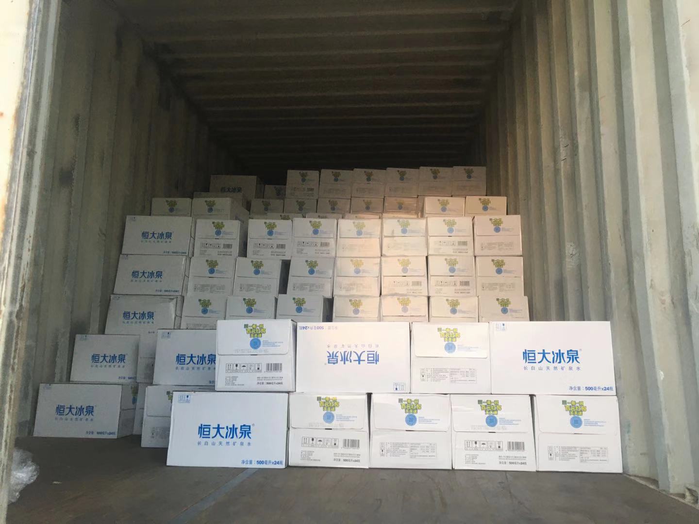 近期我们又帮柬埔寨九庆堂投资有限公司 清关一批15*40HC柜的恒大冰泉。 大家可以喝上纯净来自中国的矿泉水了。