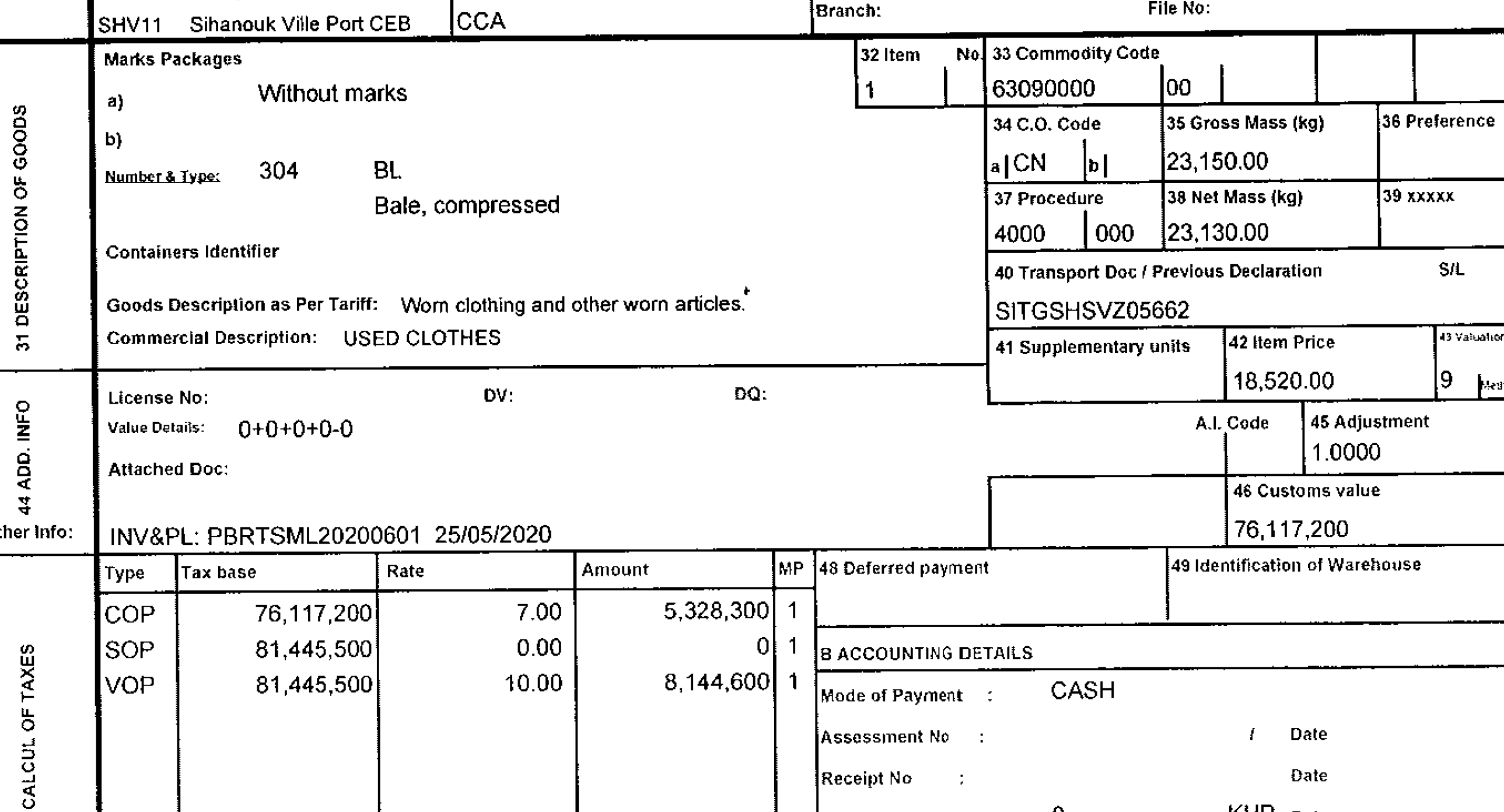 柬埔寨旧衣服进口清关