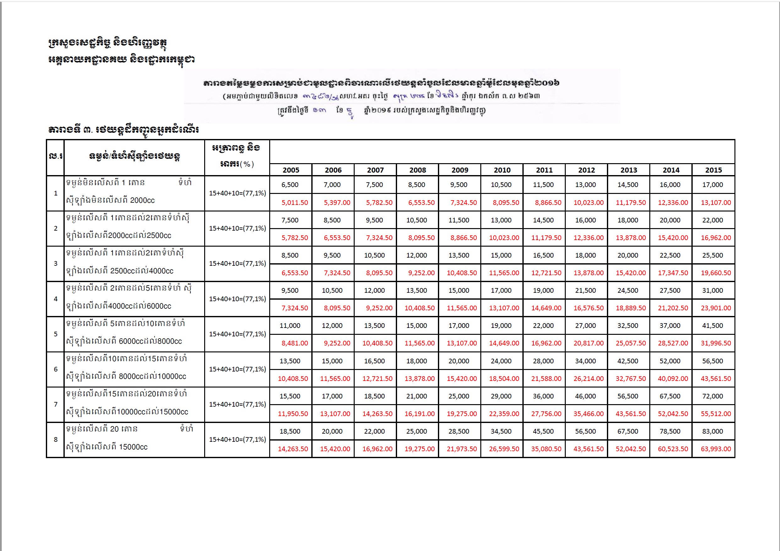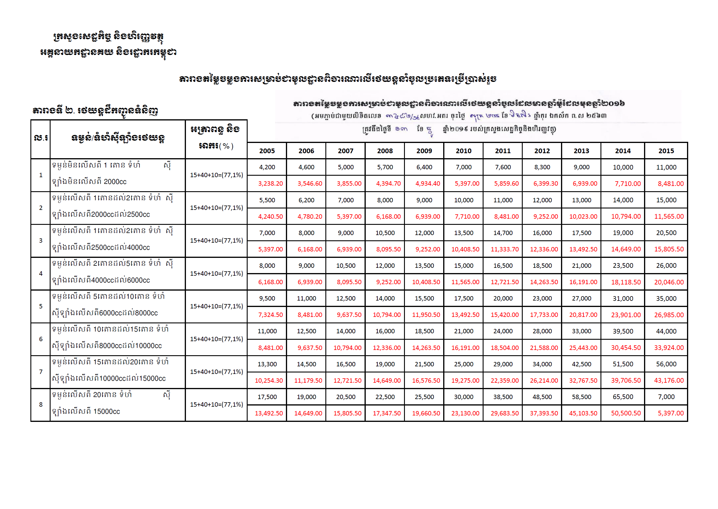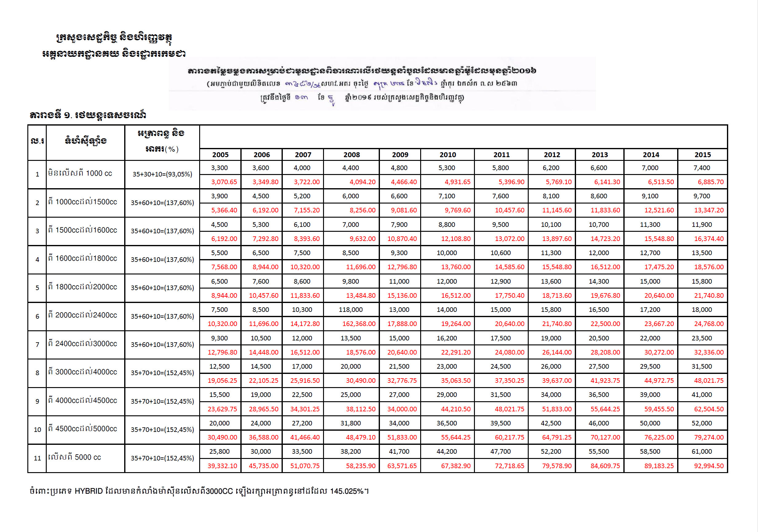 图片为柬埔寨二手车关税表。如果您需要进口二手车。可以参考此表自行核定税金。